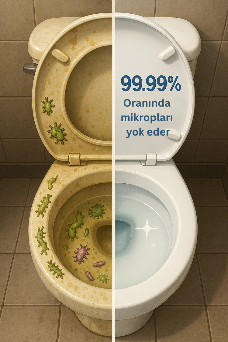 - 🦠 Klozet içindeki bakterilerin %99’unu yok eder → Özel tasarımıyla kör noktalara kadar ulaşır.