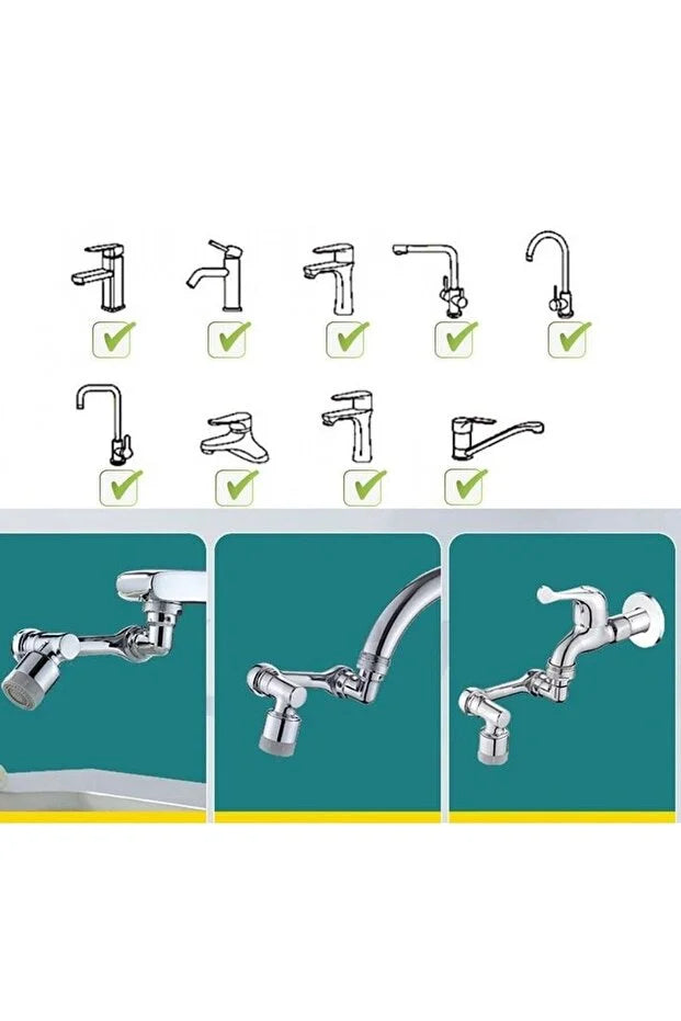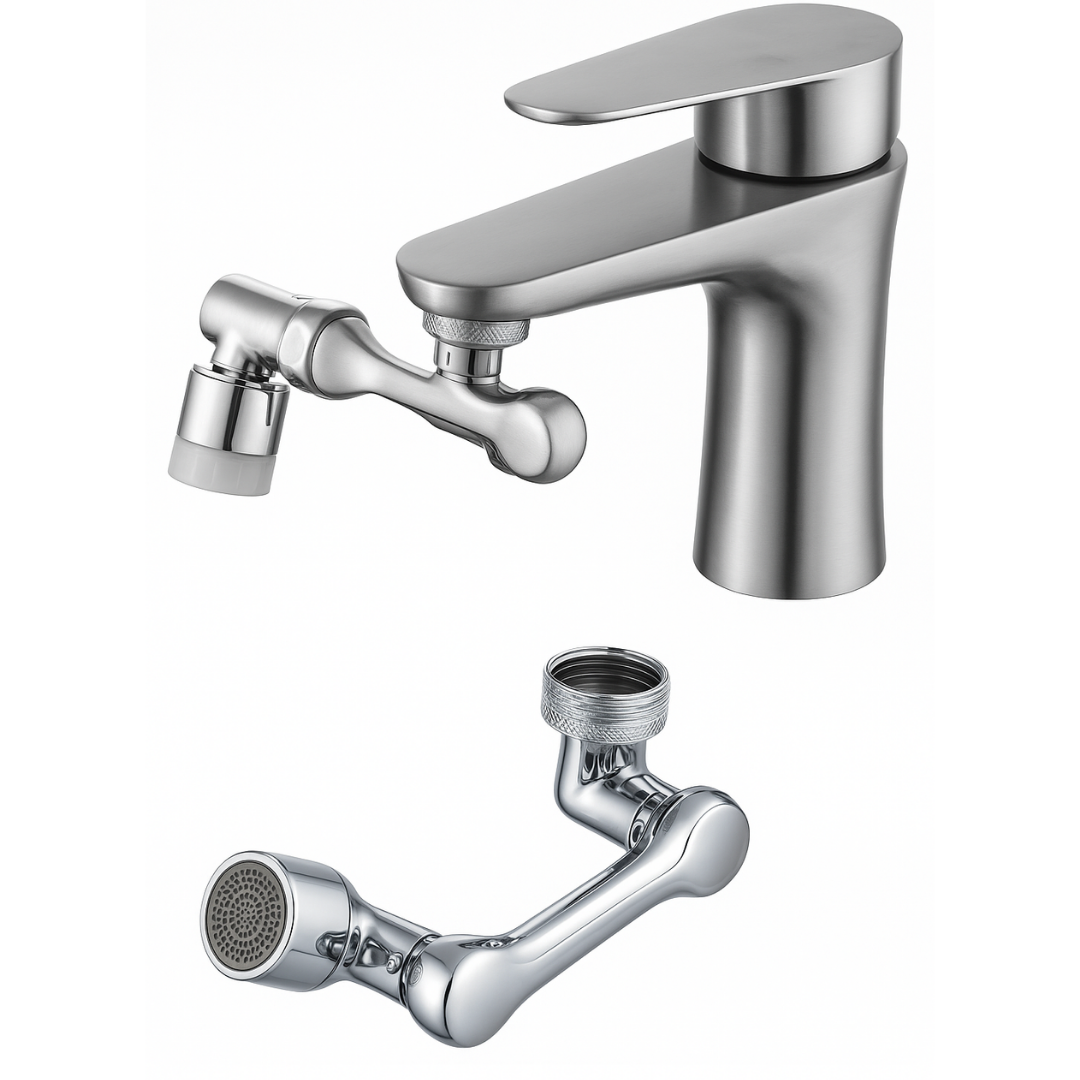 1080° dönebilir başlık sayesinde suyu istediğiniz yöne yönlendirin. El yıkamak, yüz yıkamak, lavabo temizlemek, hatta saç durulamak artık tek hareketle zahmetsiz! Bu başlığı bir kez kullanan, bir daha eski musluğa dönemiyor.
